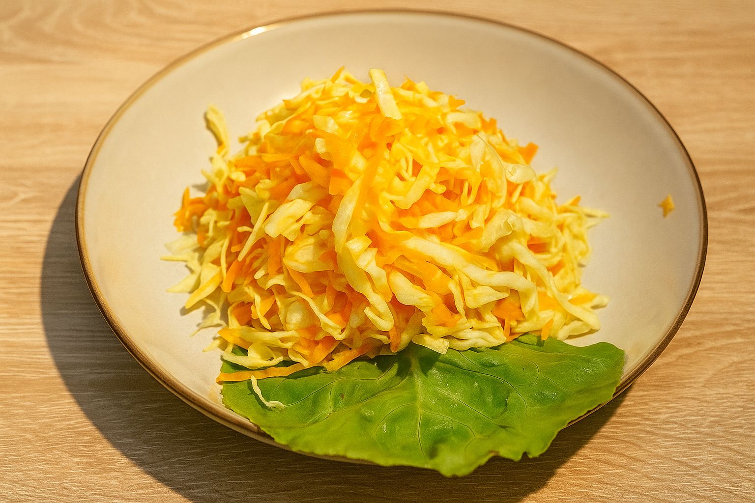 A simple, refreshing side of shredded cabbage salad, typically lightly dressed with oil, vinegar, or mayonnaise.